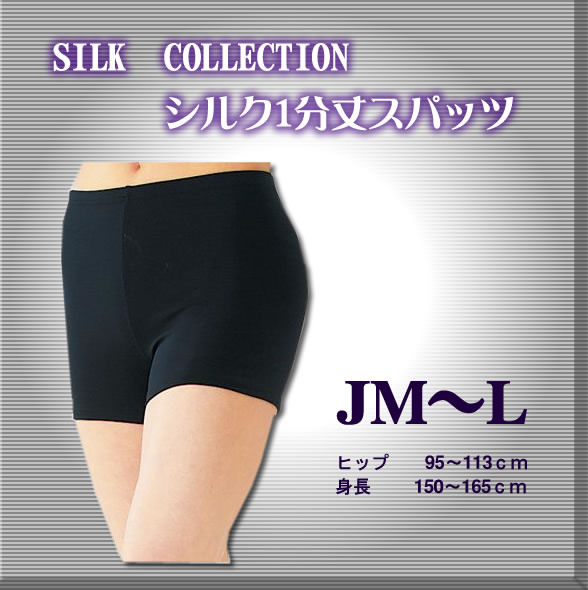 ) 【カラー】 ブラック冷え取り シルク1分丈スパッツ ■皆様に大変ご好評のシルクのびのびスパッツ・新商品として、1分丈のシルクスパッツが発売です、こちらはアウターに響かないように薄型で程よくフィットしてくれます。